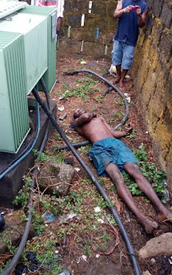 A young man was electrocuted early this morning while stealing armored cables from a transformer unit Along grace bill road, Eket, Akwa ibom state. His body has been removed. See the photos after the cut *viewer discretion advised*